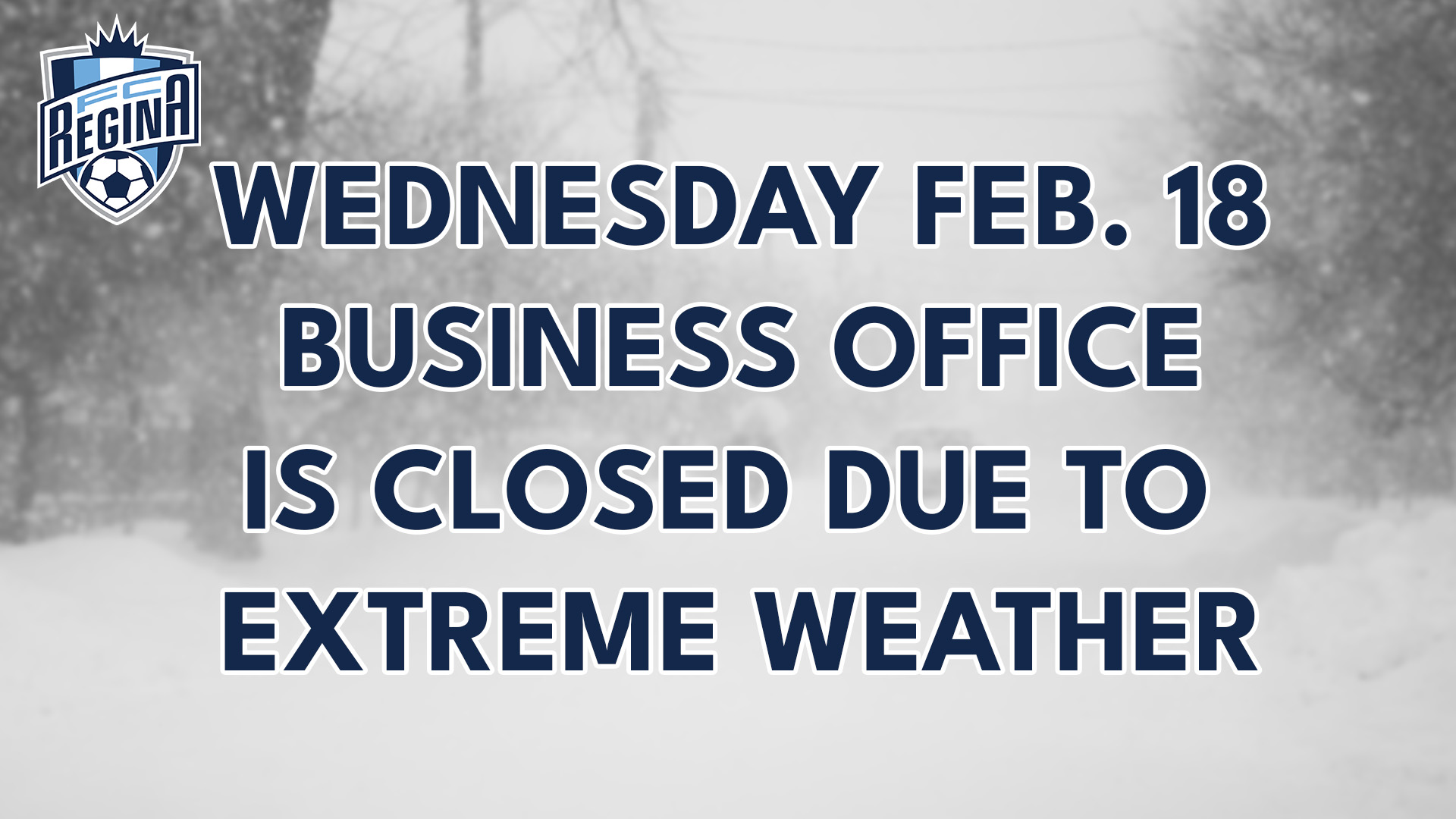 Due to current winter weather conditions, the FC Regina business office is closed today to ensure the safety of our staff and members.